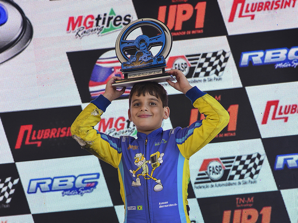 Com 19 pilotos no grid da categoria Mirim na 3ª etapa da Copa São Paulo Light, disputada no último sábado (01), no kartódromo de Interlagos, Kauan Bernardes foi um dos protagonistas. Com boas disputas, o terceiro lugar no pódio e a volta mais rápida na primeira bateria colocaram o piloto de novo na liderança da categoria Mirim.